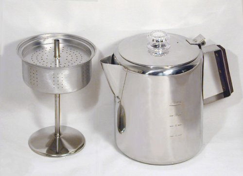 I have been using an aluminum percolator for 10+ years. They are great for camping but have the tendency to boil over if not attended. I purchased this stainless steel percolator and when I received it I was very pleased. It is made of a heavy gauge steel, well constructed, a vent hole in the lid for steam, and a stay-cool handle. I use a gas stove top and can put the flame on a size fitting the bottom of the pot (on mine, it's low, only a 3) and it will go from water and ground beans to a rich, full-bodied coffee in 35 minutes...and never boil over or need the flame adjusted. I would highly recommend this percolator to anyone who truly enjoys coffee, versus the slightly bitter and burned flavor I tend to get from an electric percolator or a drip coffeemaker. Only bad thing for me is it is a 12-cup, and that's 12--8oz. cups not the mug size I use. I would have liked if it were available in a 16-18 cup. I will purchase one if I see it.