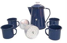 This set is okay if space and weight are not a concern. You can also buy these pieces separately at a camping store and some sporting goods stores. I recommend this because then you can select the pieces yourselves, and the quality is better this way. I find that these sets have lower quality. There are also better camp percolators that pack better (e.g., Olicamp). These cups are good if you want a basic camp cup. They are wide and good for small kids, but I recommend buying them separately.